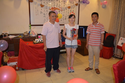 首先,主持人宣讀了此次生日會的壽星們,同事們?yōu)閴坌莻儙狭松彰?。接著,我們的曹總和周總為每位壽星送上了公司的禮物:鮮花和現(xiàn)金紅包一個,我們就是那么任性的哦!
