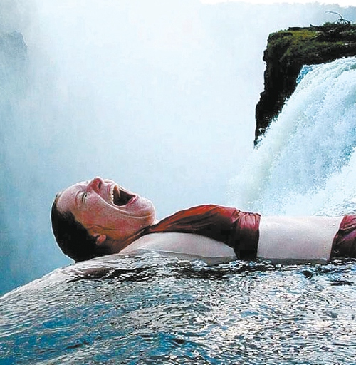 一些最大膽的游客頻頻縱身跳進(jìn)“魔鬼游泳池”,任可怕的激流將他們沖向瀑布之巔的懸崖,直到距瀑布邊緣幾厘米時(shí),他們才被懸崖邊緣凸起的巖石擋住。