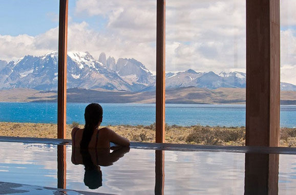 這個(gè)引人注目的智利度假勝地的室內(nèi)泳池為客人提供了卓絕的景色,在此可以從容觀賞整個(gè)沙蜜安度湖和科迪勒拉·德爾·佩恩山脈的大塊花崗巖。