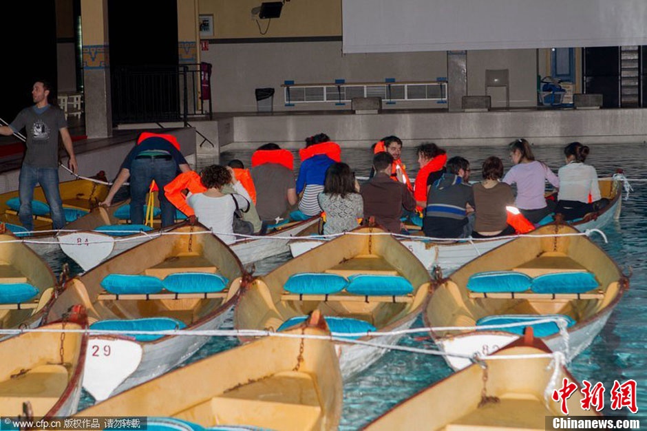 2012年12月11日訊,當?shù)貢r間12月9日,法國巴黎,李安導演電影《少年派的奇幻漂流》在帕耶宏(Pailleron)游泳池放映現(xiàn)場。據(jù)悉,影片發(fā)行方不僅讓觀眾穿上救生衣、戴上3D眼鏡、坐上小船,在放滿水的游池中感受Pi的“奇幻漂流”,更有穿著印度服裝的美女現(xiàn)場助陣。