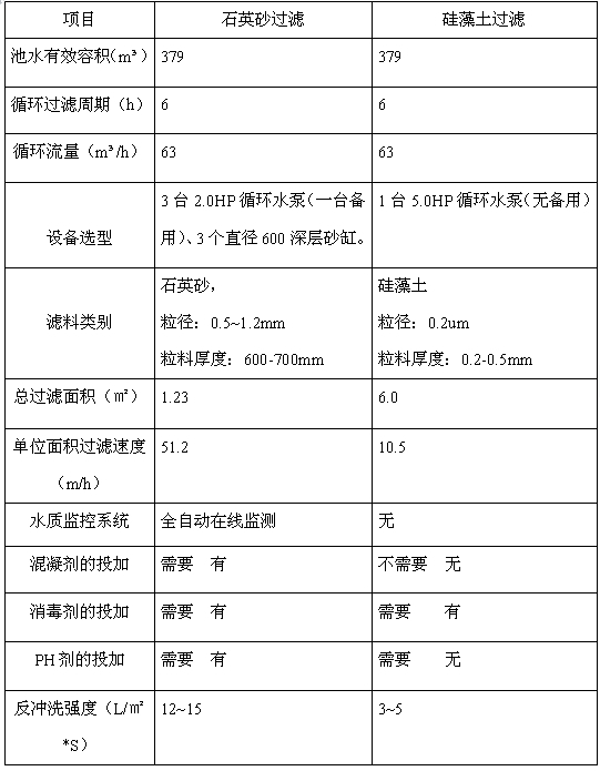泳池采用砂濾方案和硅藻土方案技術(shù)經(jīng)濟綜合比較