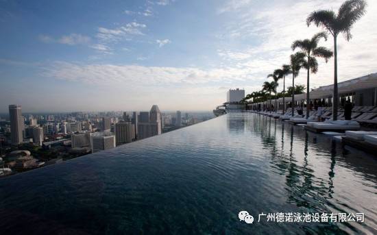新加坡著名的金沙酒店上的無邊游泳池,高度為650英尺(198米),是這一高度下世界上最大的室外泳池。 泳池猶如懸崖邊上一汪清泉,“泉水”逐漸向地平線蔓延。“水天相接”處,仿佛有一道瀑布飛流直下。不過,事實上,水漫過泳池邊界后,并非直接砸向地面,而是流入下面不遠(yuǎn)的集水池,經(jīng)過濾后重新輸入泳池。