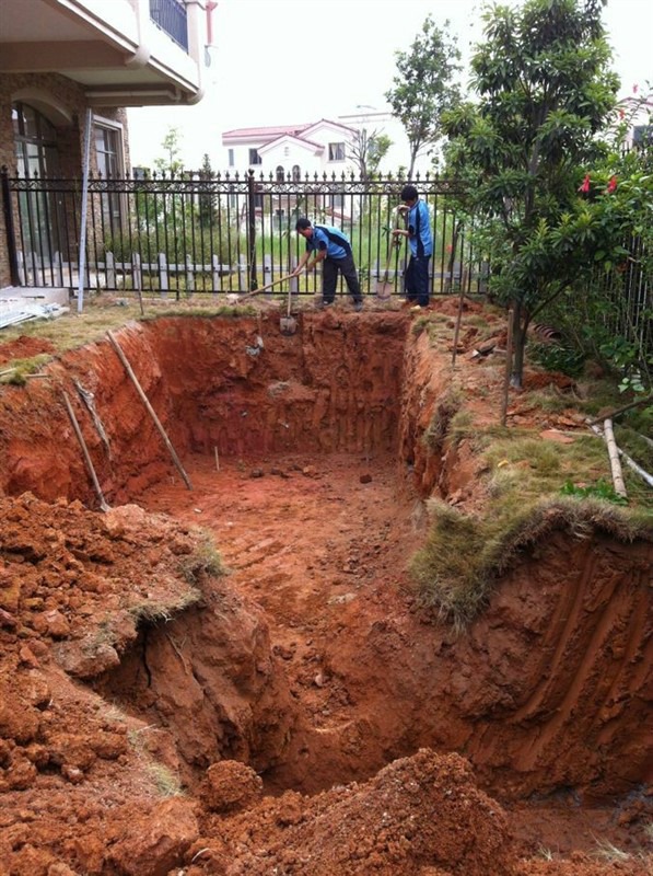 2、按照規(guī)劃位置,挖出“整體泳池”所需放置位置。